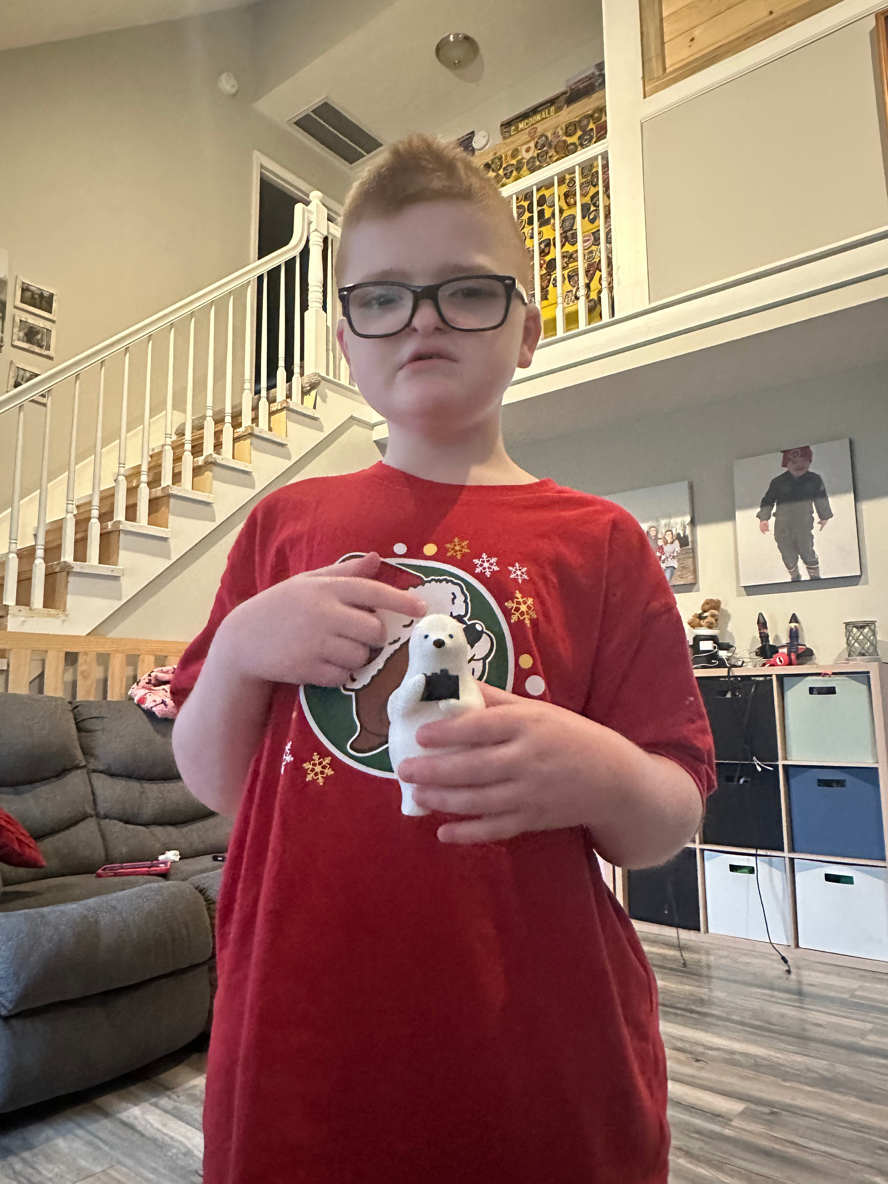 Hello. My name is Liam. I am 10 years old and I have Kleefstra Syndrome. I'm non-verbal and I'm behind, but I love 3D printing! I have been in to 3D Printing ever since I visited Grandma and Uncle Steven in Texas. Uncle Steven printed me anything I wanted, so I came back with a box full of every type of polar bear you could imagine. And I loved watching the printer work. Grandma decided I needed to be able to print things when I got home, so she bought me a new 3D printer for Christmas. We now have a Creality Ender 3 S1, 2 Bambu Lab P1S with 8 color capability and an Elegoo Centauri Carbon. I like to go down to the basement to watch it print. I even have an app on my iPad that lets me watch the printer from wherever I want. So if anybody needs anything 3D printed, let us know and we will see what we can do. I'm still learning to design my own prints, but I can print almost anything that somebody else has designed.