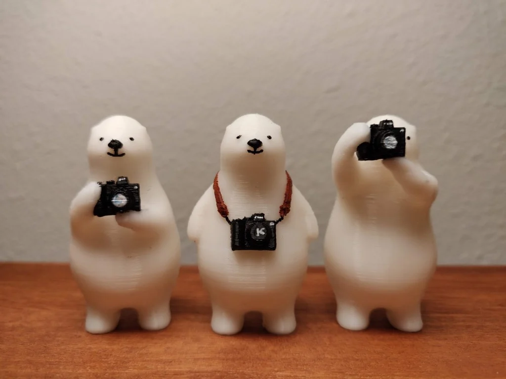 Liam decided he wanted to print a polar bear with a camera. We downloaded one from Thingiverse and it actually turned out pretty good. Liam watched it print and tried to remove it from the printer several times before it was finished. I think he was over excited.