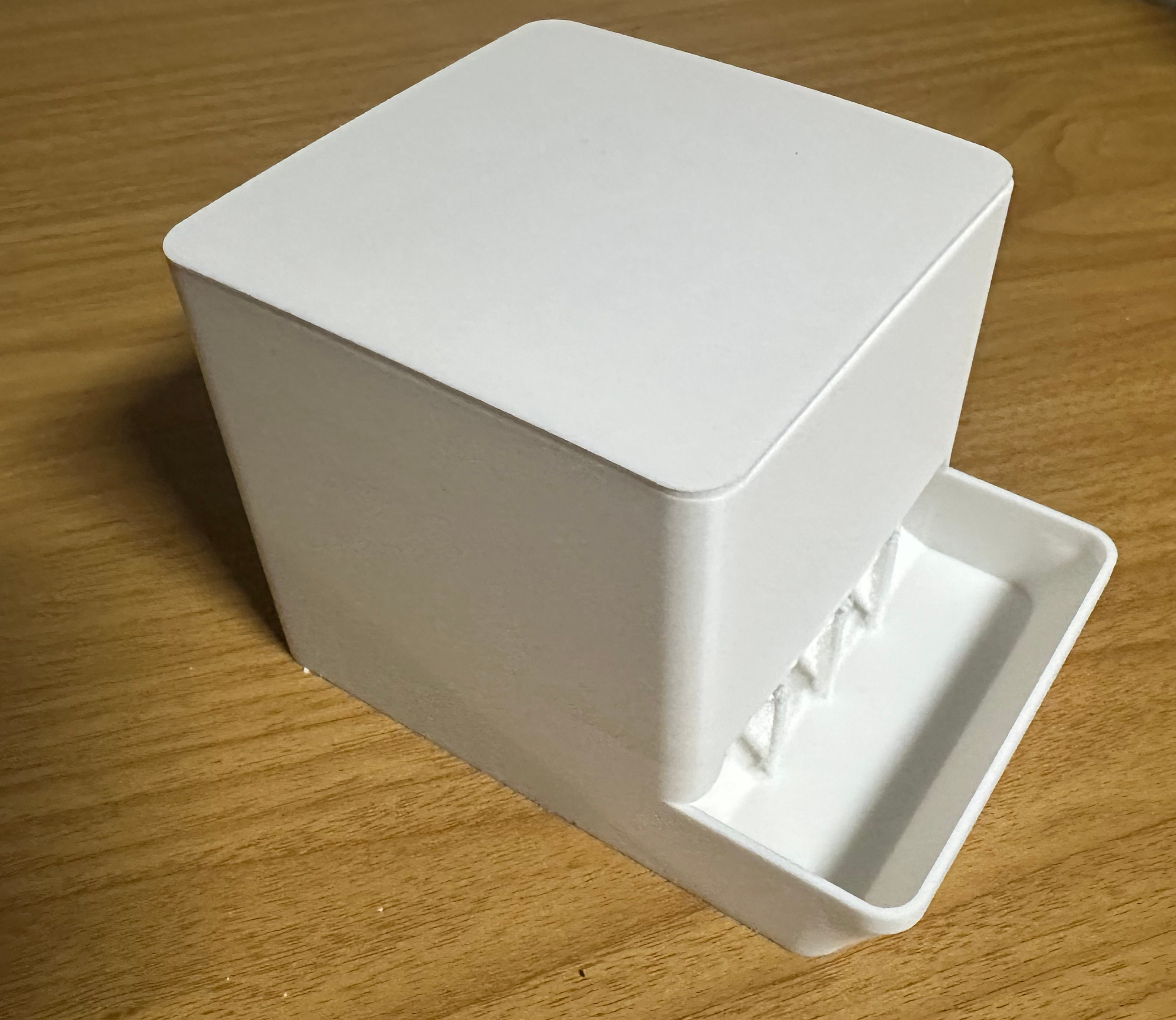 Liam said he would print something for daddy. Daddy is diabetic and takes insulin. He's tired of the box of needles falling off the refrigerator and making a huge mess, so we are making an insulin needle dispenser. The box was printed on our Bambu Lab P1S and the lid on our Creality Ender 3 S1. Both turned out great. Looks nice on top of the refrigerator. Hopefully it will be better than the cardboard box the needles come in.